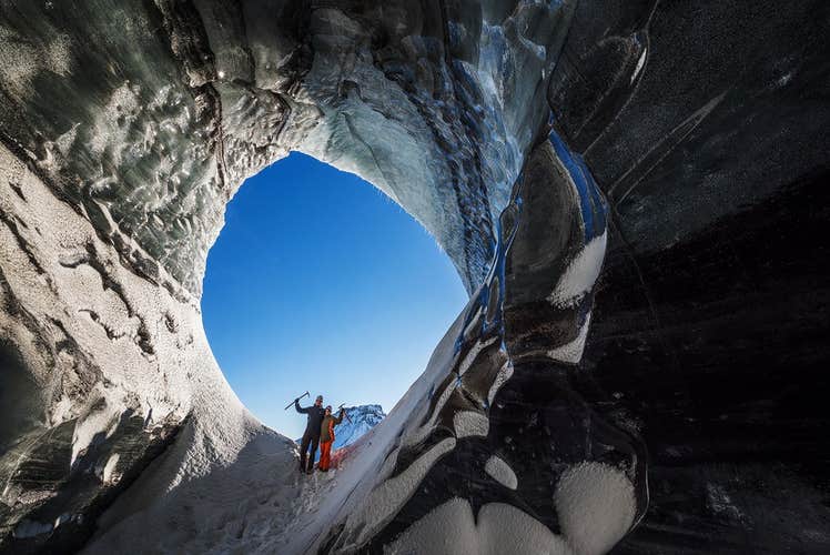 Après récupération au charmant village de Vik, vous montez à bord d'une super jeep et mettez le cap vers le glacier. Vous laissez la côte maritime derrrière vous pour rejoindre le glacier Mýrdalsjökull, abritant Katla : l'un des volcans les plus connus d'Islande. Au pied de la grotte de glace, le guide vous équipe de casque et de crampons. Vous rejoignez ensuite la grotte de couleur blanche et noire volcanique. Le guide en profite pour vous expliquer la géologie du glacier, du volcan et du phénomène des grottes de glace. Vous explorez la grotte entre 30 minutes et 1h selon vos envies.