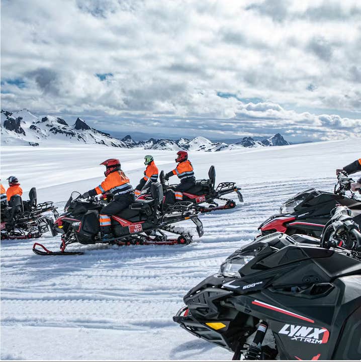 アイスランドの国土の11%を占める氷河。長い年月をかけて形成された氷河の上を、ハイスピードで駆け抜けるスノーモービルでのアドベンチャーが人気です!