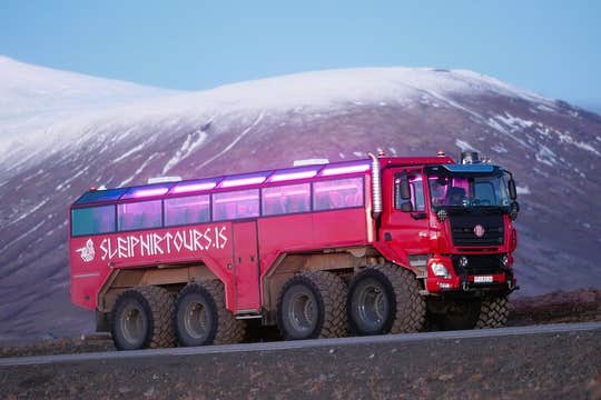 Boarding the monster glacier truck is like stepping into a world of comfort and excitement. Settle into your cozy seat and get ready to be whisked away to the heart of Langjokull, the 'Long Glacier.'