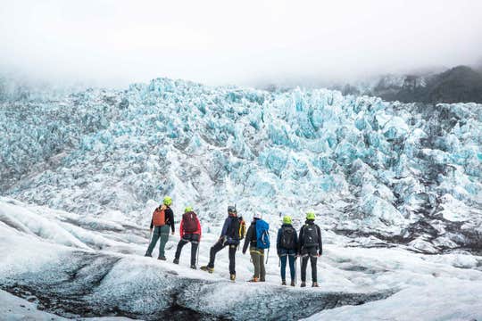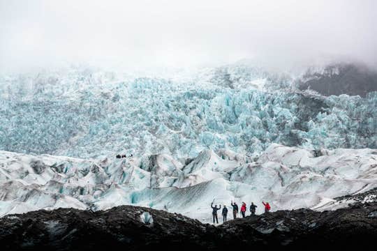 Your journey begins at Skaftafell with a short ride on the bus and a brief walk to the glacier, where your knowledgeable guide will provide instructions on how to gear up and safely navigate the glacial terrain. Equipped with crampons, an ice axe, a climbing harness, and a helmet, you'll venture onto the icy expanse of Falljokull, ready to embark on a once-in-a-lifetime adventure.