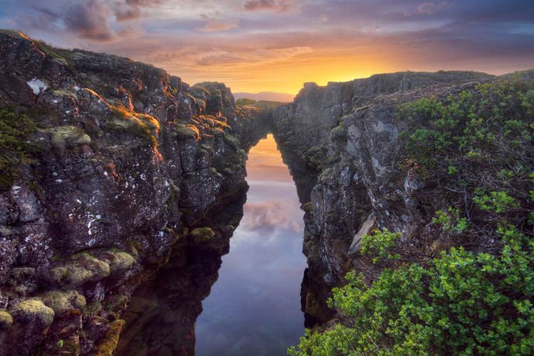 Your final stop in the Golden Circle is the remarkable Thingvellir National Park, Iceland's first UNESCO World Heritage site. At the park, you can experience walking through the rift valley where the North American and Eurasian tectonic drift apart. There's also a beautiful waterfall in the park called Oxararfoss waterfall, with a drop of 44 feet (13 meters).