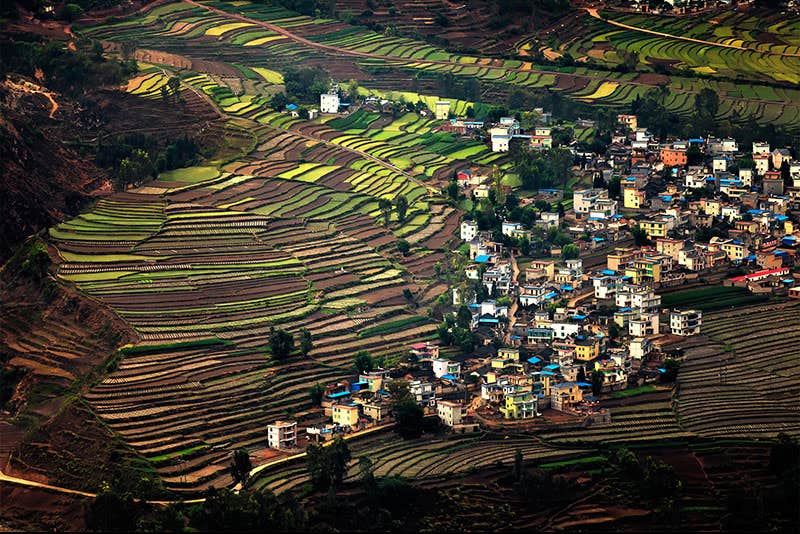 This land with picturesque scenery is paradise for photographers because it is decorated with multicoloured crops!