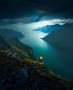Be prepared to traverse magical mountain ridges, separated by the deep, turquoise water of the fjords. At every turn, you'll be met by the sprawling coastline and dramatic, rugged views like something out of a fairytale. You'll spend your days capturing the pristine beaches, spectacular mountains and jawdropping cliffs falling straight into the ocean below.