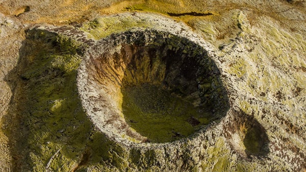 The highlight of this tour is the landing at Eldvorp volcano on the Reykjanes Peninsula in the southwest of the island. Eldvorp is a seven-mile (10-kilometer-long) crater row that showcases extensive geothermal activity, with steam rising from the earth. The combination of the rugged coastline and the billowing steam will make you feel like you've landed on another planet entirely!