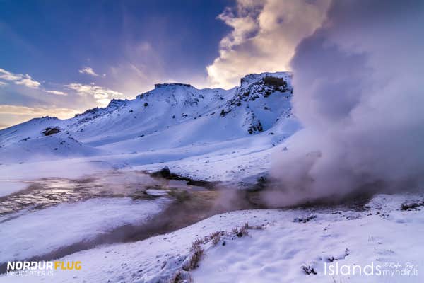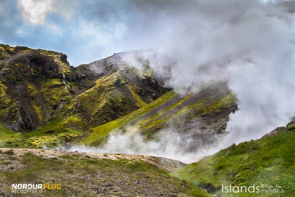 The second landing will be at the Hengill geothermal area, a remote valley accessible only by helicopter or a lengthy hike. Here, you'll encounter hot springs and boiling mud pots, getting up close to the geothermal energy that shapes Iceland's unique landscapes.