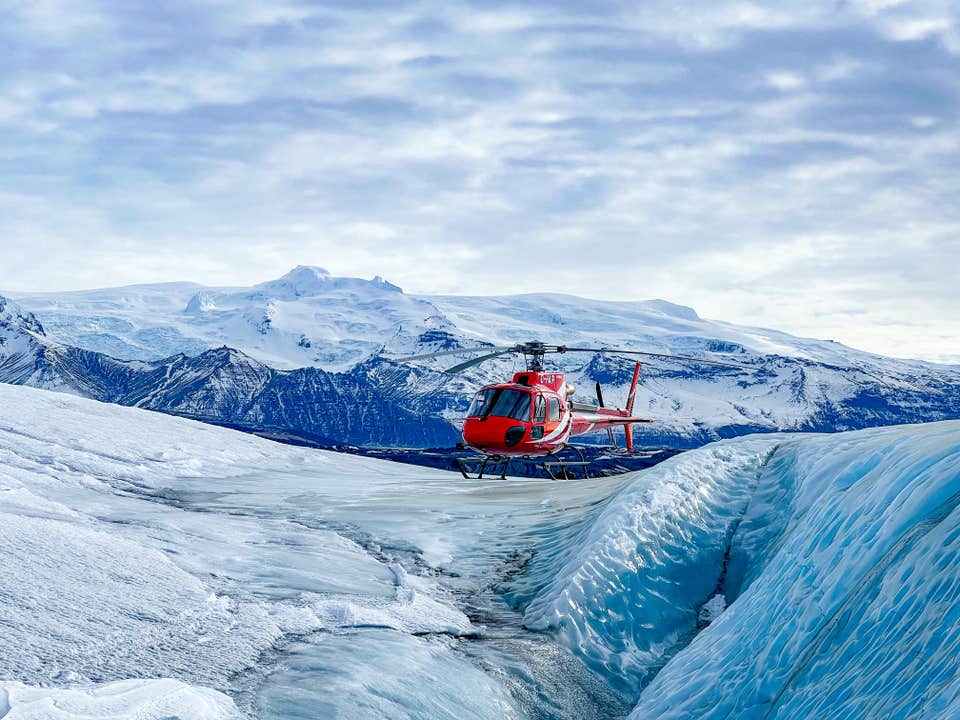 We will land on the glacier itself and prepare for a hike on the 1,000-year-old ice. Equipped with glacier gear, we hike on the glacier for about 1 hour, soaking up the incredible alpine atmosphere. A truly unforgettable adventure in an untouched glacier wonderland!