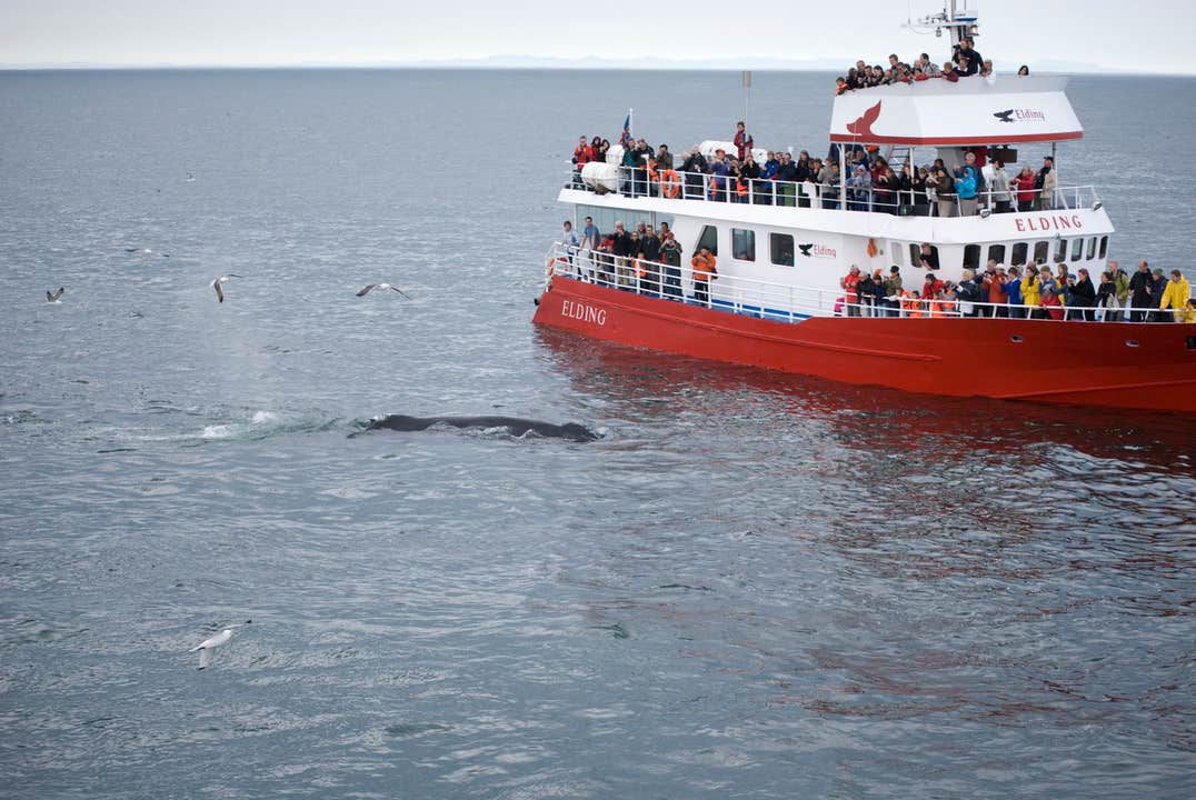 After returning to Reykjavik around 15:30, the whale watching trip will begin at 17:00 meaning you will have about 1.5 hrs to enjoy the quaint old harbor with its design boutiques and coffee houses, or simply stroll around and take in all the action in the busy harbor. In the bay, a large variety of whales, dolphins and birds can be found. The minke whales are playful and in large numbers, along with the quick and quirky white-beaked dolphins, the cute harbor porpoises and the huge humpback whales.