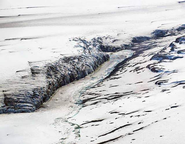 When flying over, try to spot the small cabins located at Grímsfjall, right next to Grímsvötn, where the Icelandic Glacier Research Society has set up a camp in order to keep a close eye on the Grímsvötn Volcano.