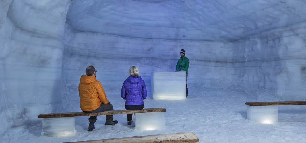 Suddenly, you're standing on an ice cap, poised to enter the glacier's heart. An expert guide leads you through this artificial wonder, showing you an icy world that seems plucked from a dream.