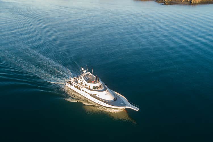 Board a luxurious yacht designed for comfort and stability. The vessel has three decks that provide panoramic views and some shelter from the elements. Warm blankets are available to keep you cozy on deck as you await the northern lights.
