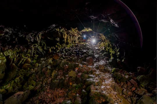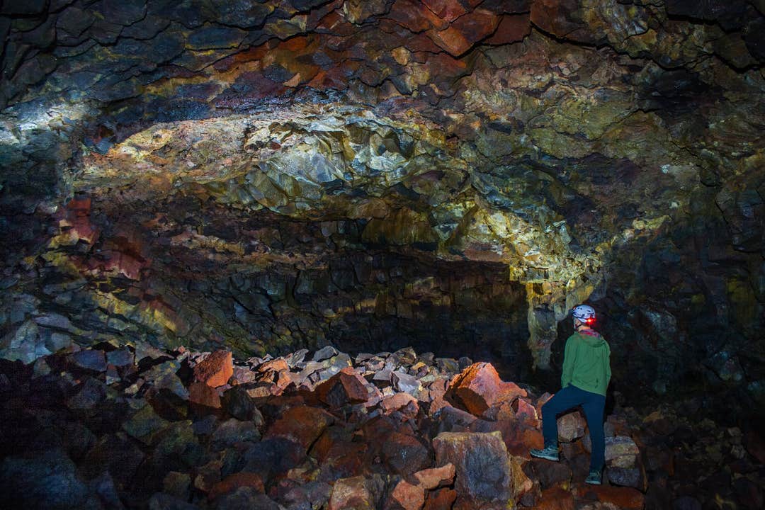 The Lava Falls Adventure Tour takes you off the beaten path and into the depths of The Lava Tunnel (also know to Icelanders as Raufarholshellir) to explore the source of the cave, the magnificent Lava Falls. The Adventure tour requires good fitness and balance. The tour traverses difficult terrain, including big rocks and boulders. It takes on average 3-4 hours to complete, relying on an experienced guide and head torches to navigate through this underground wonder. At the end of the cave you will experience breathtaking scenery as you will witness the origin on the lava flow that created the cave, which includes amazing lava falls rarely seen in the world.
